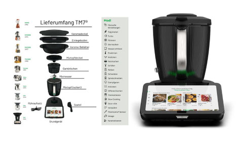 Der neue Thermomix® TM7 aus dem Hause Vorwerk vereint mehr als 30 Funktionen in einem kompakten Gerät. Zerkleinern auf verschiedenen Stufen, Anbraten, Kneten, Sauce eindicken, Karamellisieren, Ice-Crushen, Sous-vide und vieles mehr, schafft er mühelos und auf einfachen Knopfdruck. Mit dem grösseren Display, den leiseren Arbeitsmodi, dem platzsparenden Design und dem grösseren Varoma Behälter hebt er dein Kocherlebnis auf ein neues Level.